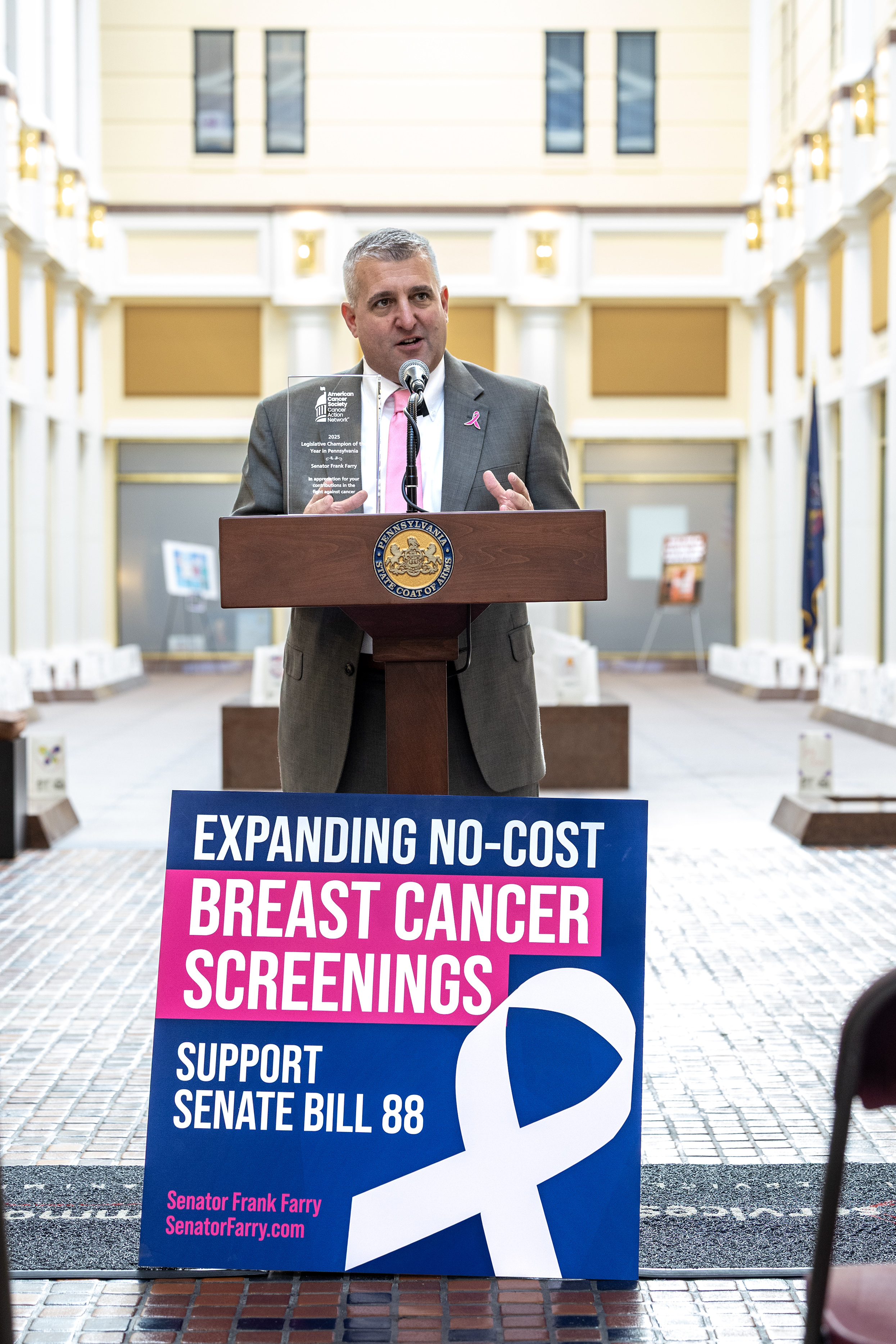 Sen. Frank Farry (R-6) today announced his breast cancer imaging legislation passed the House of Representatives and is almost law, marking a major advancement in cancer care and early detection efforts across Pennsylvania. [Read More]