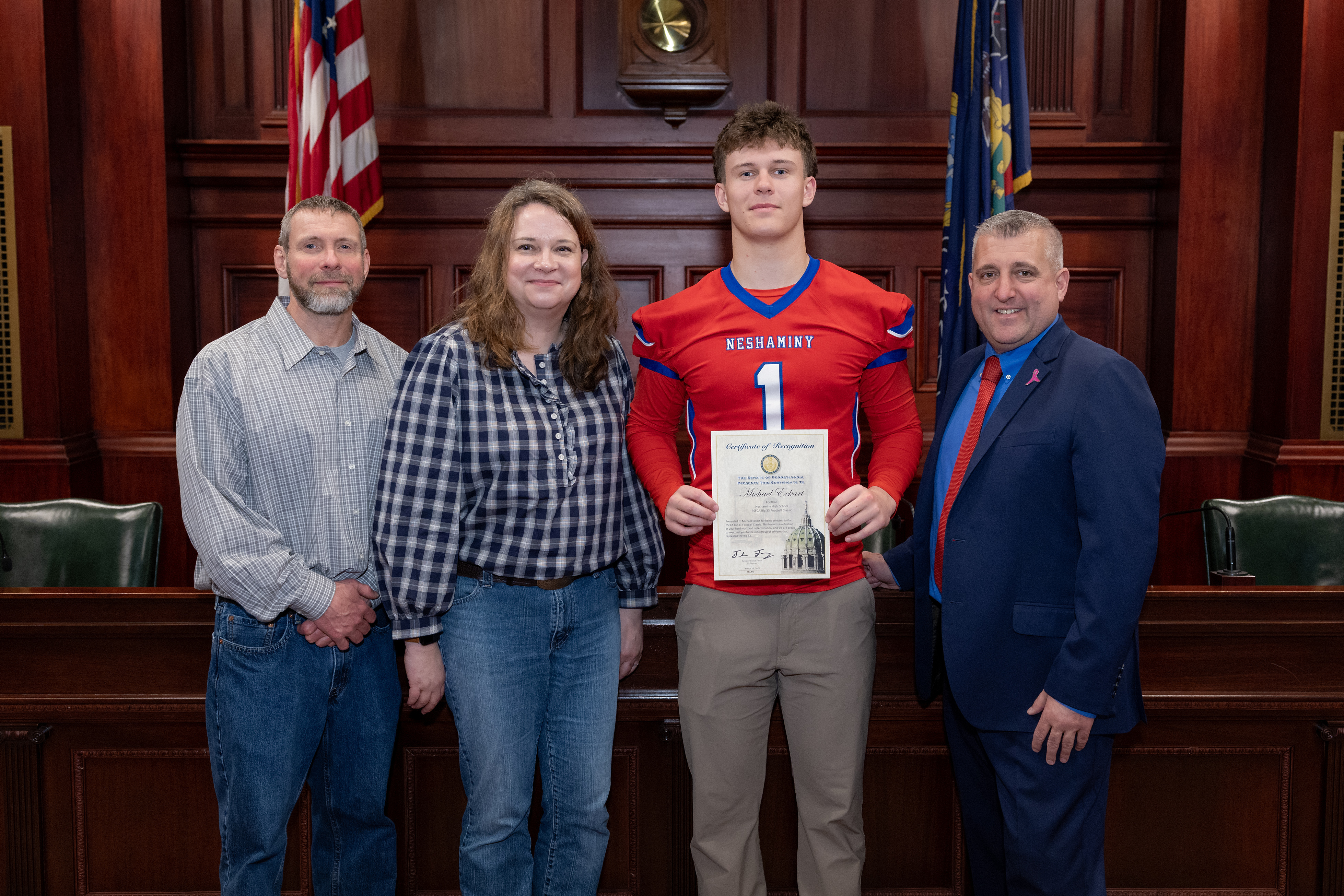 We hope to see you there! Upcoming Veterans ExpoRep. Marcell and I invite you to join us as we celebrate America’s 250th anniversary saluting our local veterans at our upcoming expo. Our Veterans Expo will be held on Friday, April 10 from 11 a.m. to 1 p.m, at the Northampton Valley Country Club, located at 299 Richboro Road, Richboro, PA. The expo is open to all veterans of the 6th Senatorial District and their families, providing an opportunity to network with professionals who provide services to veterans. For information on all our upcoming events, visit my website: Upcoming Events – Senator Farry Emergency Management Services Law Task ForceAs chair of the Fire and EMS caucus, I was recently appointed to a legislative task force consisting of an advisory committee of stakeholders to review, analyze and update the Pennsylvania’s Emergency Management Services Law, which has not been updated in over 30 years. As part of this effort, I met with the emergency management coordinators from municipalities across the 6th Senatorial district earlier this month to get an understanding of their daily challenges and the input they have for solutions. It was a productive and insightful conversation, and I’m grateful for their dedication to keeping our communities safe. I look forward to continuing this work together to ensure our first responder community has the tools, resources and support they need to serve and protect our residents. Congratulations to New Eagle ScoutCongratulations to Nolan Scheller of Troop 139 in Warminster for earning the rank of Eagle Scout. I was proud to attend his Court of Honor this past weekend and present Nolan with a citation from the Senate of PA recognizing his dedication, perseverance, and outstanding achievement. For his Eagle Scout community service project, Nolan designed and built birdhouses for the Moland House Historic Park in Warminster, leaving a lasting impact on the community. Congratulations to Nolan on this well-deserved honor and I wish him continued success. Local Athlete Named to the Big 33 Football RosterEarlier this week, I had the pleasure of joining Michael Eckert and his parents at the Capitol. Michael, quarterback for Neshaminy High School football team, has been selected to represent Pennsylvania in the Big 33 Football Class, an exceptional honor following an outstanding season and career. Michael also took part in a special State Capitol celebration alongside his fellow Big 33 teammates and cheerleaders. Originating in 1957, the Big 33 Football Classic is one of the nation’s finest scholastic All-Star Football Games, currently showcasing Pennsylvania and Maryland’s premier football players. Now into its sixth decade, the Football Classic is often described as “The Super Bowl of High School Football.” Our community is incredibly proud, and we look forward to cheering him on as he represents both Pennsylvania and Neshaminy in the highly anticipated game on Sunday, May 24 at Cumberland Valley High School’s Chapman Field in Cumberland County, PA, with kickoff at 6:30 p.m. Senate Approves Measure to Protect Children from Harmful AI Chats