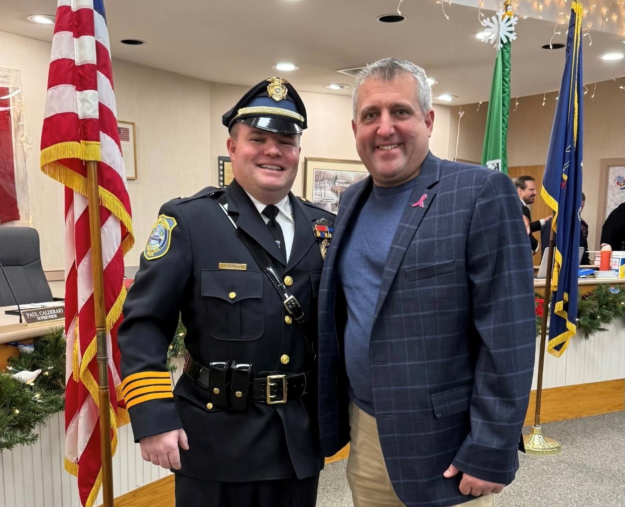 Happy Holidays! I offer you my warm wishes for a very Merry Christmas filled with joy and laughter. May you and your family enjoy a holiday season that is marked by joy and love. My district office hours may be limited due to the holidays. Please call ahead, 215-638-1784, to be sure my office is open. Thanking Veterans During the Holiday SeasonLast week, I was honored to join former State Senator and current Adjutant General of Pennsylvania, Major General John Pippy, along with Sen. Collett and Rep. Hogan, at the Delaware Valley Veterans’ Home to thank the residents for their service and the staff for their dedication during their annual Holiday celebration. The holiday season is a great time to thank and appreciate those that make selfless sacrifices to serve our country and I will continue to be an advocate for our veterans and their families. Student Leads Effort to Support Those in Need‘Tis the season for giving — and Holy Ghost Prep senior Matthew Pienkowski truly embodied that spirit. For a school project, Matthew organized 100 SHINE bags for the Bucks County Emergency Homeless Shelter to support those in need. At the start of his project, he reached out for support which I was happy to provide, and I was proud to join him, Rep. Tomlinson and Commissioner DiGirolamo on Monday to help deliver and distribute the bags. Congratulations to Lieutenant Rick HazelettI was honored to attend the ceremony for Rick Hazelett’s promotion to Lieutenant of the Buckingham Police Department last week. Rick’s dedication to public service — including his many years as a local volunteer firefighter, speaks volumes about his commitment to our community. Also, congratulations to the three new Buckingham PD police officers sworn in last week. Thank you all for choosing to serve and protect.